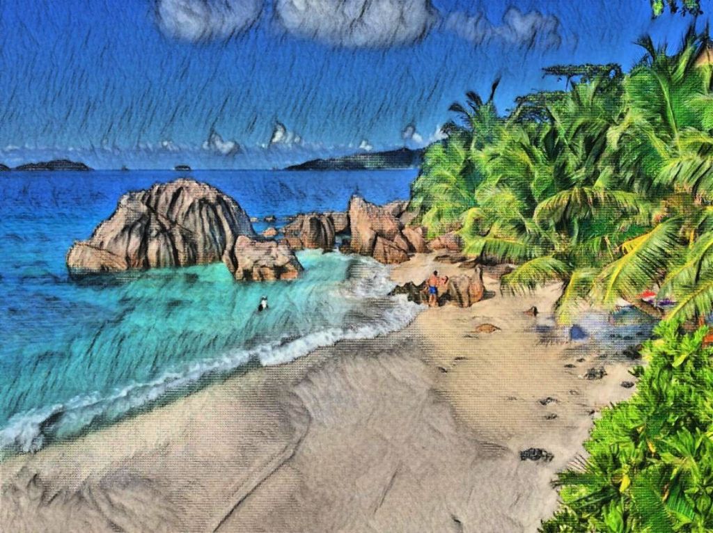 Mizu stood under the cool shade of the coco-de-mer trees whose palms stretched over her to block the whole sky. A little sea breeze notoriously rattled its giant fruits and a loud “dud dud dud” crossed the seas and entered the nook of Victoria city. Mizu was on the Praslin, one of Seychelles’ islands far from the city, which had an endangered breed of palm trees growing in its hinterland.