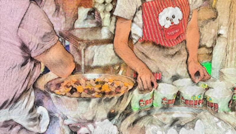 Mizu walked ahead to the taro ball soup shop where a sweet smell candied the air. A white floury dough was being cut by a family of four and dropped into the grey station before her and the scene looked like live machinery. The taro coloured the flour in a violet crystal when turned over in the liquid and they looked like pebbles when dropped into the paper bowl. Mizu held the cup between her fingers, inhaled, picked up the first taro ball which was doused in the rock sugar and took a bite. She couldn’t understand where it got it lightness, but on eating it she felt very much like she was eating air, an essence she couldn’t make sense of.